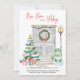All in one holiday moving announcement and christmas card personalized with your new address and christmas greeting. It is lettered with New Home for the Holidays in casual handwriting. The watercolor design features a festive front door with wreath, your door number, christmas tree, presents, snowman and lantern.