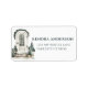 This return address label design features white door surrounded by evergreens. You can personalize these labels with your name and address in forest green text