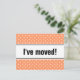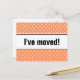 New home moving postcard coral pink and white polkadots Custom moving text; We have moved! Add your new address on the back. Modern moving cards for home and business.