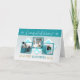 A summery, beach themed design in shades of blue ranging from bright aqua to deep turquoise with hints of sand colored golden brown on this card to congratulate the new homeowner.