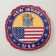 Badge of New Jersey with flag of New Jersey and flag of USA colours, rounded shape.