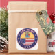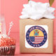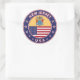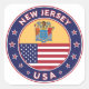 Badge of New Jersey with flag of New Jersey and American flag colors, rounded shape.
