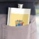 The product is a good size and came exactly as it was pictured.  The lid is not attached to the flask, which could be dangerous on drunken nights... The print came out surprisingly well and looks very sharp.  Would definitely recommend.
