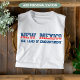 Customizable Patriotic New Mexico The Land of Enchantment T-shirt for men or women, featuring a red and blue design. May be personalized with your own text. Choose "Personalize this Template" to customize, or you may keep the design as is by leaving the text fields blank. This design is also available for all products including sweatshirts, children's clothing, mugs, tumblers, and more. #zazzlemade