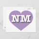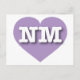 This postcard features a cool lavender heart containing the bold, white, upper case letters NM, the official abbreviation of New Mexico, the land of enchantment. The reverse side of the postcard is blank, awaiting your handwritten sentiments or customized text.