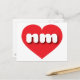 This postcard features a vibrant red heart containing the bold, white, rounded lower case letters nm, a playful abbreviation for New Mexico, the land of enchantment. The reverse side of the card is blank, awaiting your personalized text or handwritten sentiments.