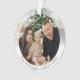 New modern style, double sided, two photo, round acrylic ornament. On the front side, this custom ornament design features your personal photo highlighted in a unique delicate white gradient frame. The designs modern typography displays your family name and the year or can be edited to read anything you like. The text is in a warm bronze colour which also can be easily edited to any colour of your choosing. The back of the ornament fully displays your second photo. The perfect keepsake gift and tree décor for the holidays & Christmas.