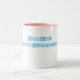 A white mug with a pink interior featuring the phrase "New Mom Need Caffeine" in block letters.