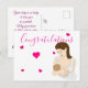 Celebrate motherhood with this charming postcard! The front showcases a mother and baby with pink hearts and "Congratulations." The back features a heartfelt message, making it a perfect gift for new moms.