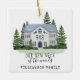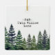 New neck of the woods watercolor house keepsake ornaments. Our design features our own hand-drawn watercolor home with watercolor pine trees nested around the home. Personalize with your name and street name. The reverse side features watercolor forest pine trees and is customized with your new home address. All illustrations are hand-drawn original artwork by Moodthology.