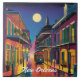 "new orleans louisiana travel", "vibrant full moon night life", "retro colourful postcard poster", "streetcar tram balconies usa", "french quarter america tourism", "american houses tourist souvenir", "vintage antique balcony buildings", "window shutters famous landmark", "sights sites to visit", "historic orange house building"