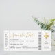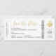 Boarding pass plane ticket save the date card for a New Orleans destination wedding with a simple and elegant faux gold lush fleur de lis icon design and modern script font on a fully editable template for a travel themed wedding date announcement that will get guests excited to plan their trip for your ceremony. Room for hotel accommodations, travel details, and itinerary on the back of this simple and creative save the date that works for a New Orleans, Louisana or Paris, France theme destination wedding.