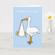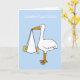 A giant cartoon stork is delivering a new puppy. A humourous congratulations card or gift for anyone adopting a new 'fur baby'.