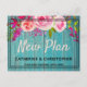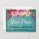 This pretty rustic New Plan Wedding Postponement postcard features a blue wood background with trendy typography decorated with a rose watercolor floral bouquet with green leafing. Customize the font and colour of the text to your liking.
