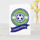 Calling all soccer / football fans! A new recruit has arrived! Say congratulations with this cute newborn baby greeting card. Easy to customize with their family name and your personalized text inside. Featuring a green soccer ball logo and text: "NEW RECRUIT. TEAM (family name). CONGRATULATIONS". Space provided for the baby's year of birth. The funny pun inside message says "A true champion has entered the field! Wishing your little one a future filled with amazing moments, great teamwork, and goals scored with love" - this can be customized to any text of your choosing.