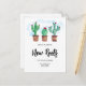 This moving announcement postcard is decorated with watercolor cacti, a blue sky, and New Roots in stylish typography.