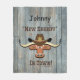 Personalize this Little Cowboy's "One of a Kind" New Sheriff In Town Fleece Blanket! It Features a Comical Longhorn Steer Wearing a Brown Sheriff's Western Cowboy Hat with a Big Gold Sheriff's Star, Surrounded by the Words...."New Sheriff In Town" on a Wood Background!