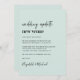 Minimal modern light mint green wedding change of venue announcement. "wedding update new venue" is written in a mix of a contemporary script and bold trendy typography (you can change this to "new date," "smaller wedding," etc). Personalize your new venue message, add your names in a signature-like script and add your wedding website on the reverse side or leave blank.