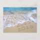 New year 2026 text in wet beach sand with frothy surf for customer thank you from business