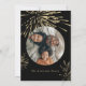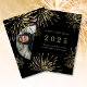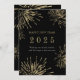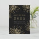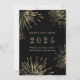 Elegant double-sided New Year holiday greeting card with gold fireworks on a black background. Features ‘Happy New Year 2025’ and a festive message on front, plus a customizable photo and family name on the back. Perfect for a personalized, luxury photo card.