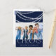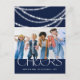 The back of the card features a snapshot photo on a snow dots background and a personalizable holiday message.