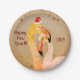 Beautiful New Year paper plates with flamingo birds, Santa hat and snowflakes. Easy to add custom text and year.