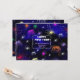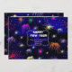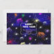 Fire works and stars on a deep blue stained glass background. Happy New Year. You are invited to celebrate With Us can be personalized with the New Year date.