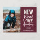 New Year New Adventures, holiday photo postcard. Features modern chic white typography on purple with single photo on front.