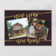 Let your family and friends know the good news of your move and wish them a happy new year. This new years moving announcement postcard features 2 photos, typography script ''new year new home'' and your message on the back.