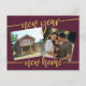 Let your family and friends know the good news of your move and wish them a happy new year. This new years moving announcement postcard features 2 photos, typography script ''new year new home'' and your message on the back.
