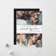 The phrase "new year" in modern black script with three of your favourite photos in a collage and a black and white confetti pattern on the back