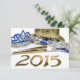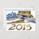 Festive party supplies include party hats, party favours and tiaras along with '2015' on a white background as the main photo on a New Years eve party invitation.