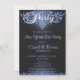 A fun blue glitter look New Years eve party invitation with a festive slight glitter glow background. The beautiful ornamental design at the top includes the word party to set the tone of your invitation, to party with style, originality and class. Design by Amelia Carrie for zazzle.com/GlitterInvitations Note: This is graphic art print and contains no messy glitter (it just looks real).