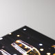 New Year's Eve celebration SlipperyJoe's champagne bottle toast gay pride gifts LGBTQIA artistic four filled glasses string lights baubles ribbons clock showing almost midnight countdown gold confetti covered table vibrant festive scene