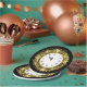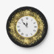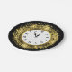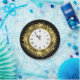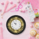 Design features bright, sparkly gold confetti in the round and a clock in Roman numerals. White face/black hands.