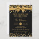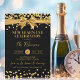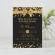 New Years Eve Gold Glitter Confetti & Bow Black Invitation