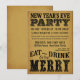 EAT, DRINK, & BE MERRY -- New Year's Eve Party Invitations 2012-2013 -- Fun, stylish, and affordable vintage New Year holiday party invitations for your festive event, dinner party, cocktail party, or open house celebration -- Detailed and ornate retro letterpress typography style script with Victorian era text on aged antique playbill parchment. Just enter your information to create your own elegant and stylish unique customized holiday party invitation at an affordable price. Coordinating matching postage stamps, mugs, buttons, stickers, trendy gifts and party favours available upon request.