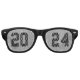 Cool black retro sunglasses with text "2024" and silver glitter background. Unisex for men and women. Great for a New Years Eve party. Also, good for senior graduation.