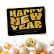 New Year's Eve party fun trendy retro black gold Invitation