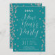 New Years Eve Silver Glitter Confetti Turquoise Invitation