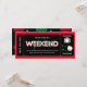 New Year's Eve Weekend Vegas Getaway Gift Voucher Ticket. A fun design featuring an old-school black boarding pass with a white suitcase and bold typography on a red background. The bright white and green accents and the poker chips and cards are a clue to the destination. This gift voucher is the perfect gift for a Las Vegas weekend getaway with your girlfriend, partner, bestie, spouse, mother, grandmother, etc. to ring in the new year in style! Just add the date, and any other specifics for the trip and you're all set. Pack your bags and faites vos jeux!