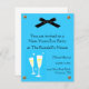 Pretty blue invitation with a graphic of a black bow at the top. Two champagne glasses are on the left side. Perfect invitation for your New Years Eve bash. Customize all the text in font style, colour and size to suit your likes. Add more text fields if you desire.