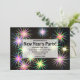 A bright New Year's party invitation with colourful fireworks on a black background. Customize the sample text with your own information for your event.