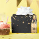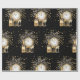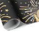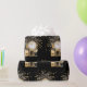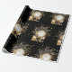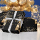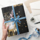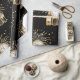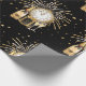 New Year's Eve or New Year's day party gift wrap with gold on black, featuring a clock ready to strike midnight, champagne and gift. Gift your party guests or your significant other with something special to celebrate the upcoming year. Gold, black, gold glitter.