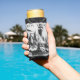 New York black and white can cooler featuring the New York skyline and landscape. Fun and modern design. Custom text. Change the text on the can cooler or leave as is. Use the template to create your own New York can cooler.