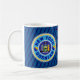 New York Bosnian American Coffee Cup. New York Bosnian design in blues and yellow, with the state flag of New York in the centre and the flag of Bosnia Herzegovina on the sides.