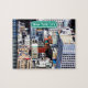 Puzzle from New York City featuring a colourful photography of the artistical architectur of the city, the typical green and white city sign and the customizable text "New York City".
