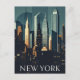 A vibrant illustration of a famous city skyline, featuring iconic skyscrapers and landmarks. The image captures the dynamic energy and architectural grandeur of the city, with its towering buildings and bustling streets. The overall style is bold and graphic, with a focus on the city's iconic skyline.