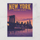 A vintage-style postcard featuring the iconic New York City skyline and Brooklyn Bridge at sunset. Perfect for travelers, collectors, and anyone who loves the vibrant energy of the Empire State.