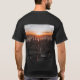 This T-shirt design captures the essence of New York City, blending its iconic skyline with a touch of urban artistry. The central focus is the towering silhouette of famous landmarks like the Empire State Building, the Statue of Liberty, and the Brooklyn Bridge, all sketched with bold, sharp lines. The skyline is set against a dynamic backdrop of the city’s night lights, with a gradient of deep blues and purples representing the twilight sky.
